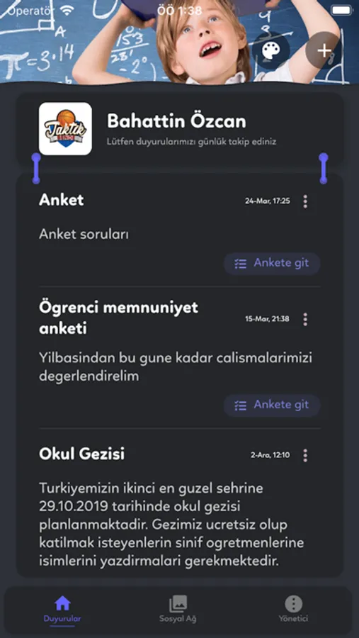 Okul yönetim sistemi, Eğitim Kurumlarının ihtiyaç duyduğu programları tek çatı altında toplayan, esnek ve işlevsel bir okul yönetim sistemidir. Uygulama sayesinde kurumlardaki tüm süreçler bir bütünlük içerisinde yönetilebilecektir. Yapay zekâ tabanlı okul yönetim sistemi kolej, özel okul, devlet okulu, etüt merkezleri gibi değişik türlerdeki eğitim kurumlarına uygun olarak geliştirilip, kurumların ihtiyaçlarına göre şekillenebilmektedir. Kurumlar için tüm akademik ve idari işler sistem üzerinden yürütülebilecek ve sistem içerisinde saklanabilecektir. Kullanıcı dostu ve son teknolojik altyapı kullanılarak hazırlanan uygulama modüler alt yapısı sayesinde sadece istediğiniz hizmetleri uygulama içerisinde alabilecek ve kullanıcılarınıza sunabileceksiniz. Farklı kurumların farklı ihtiyaçlarına göre şekillenebilen uygulama ile kullanılmayan modüller kurumlar için ek bir maliyet yük sağlamaz. Yapay zekâ tabanlı okul yönetim sistemiyle eğitim sektöründe hizmet veren kurum veya kuruluşların işleyiş aşamalarına mobil dünyanın hız ve becerilerini ekleyerek daha etkin ve verimli çalışmasına katkı sağlayacaktır.