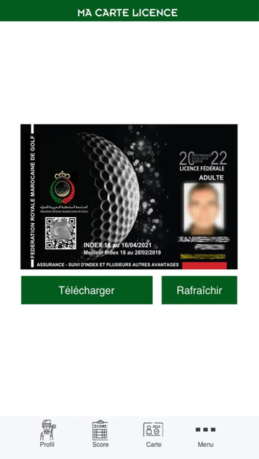 L'espace Licencié de la Fédération Royale Marocaine de Golf permet à ses licenciés d'accéder aux informations relatives à sa licence Fédérale :