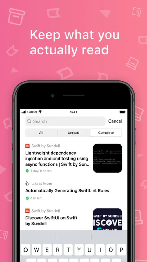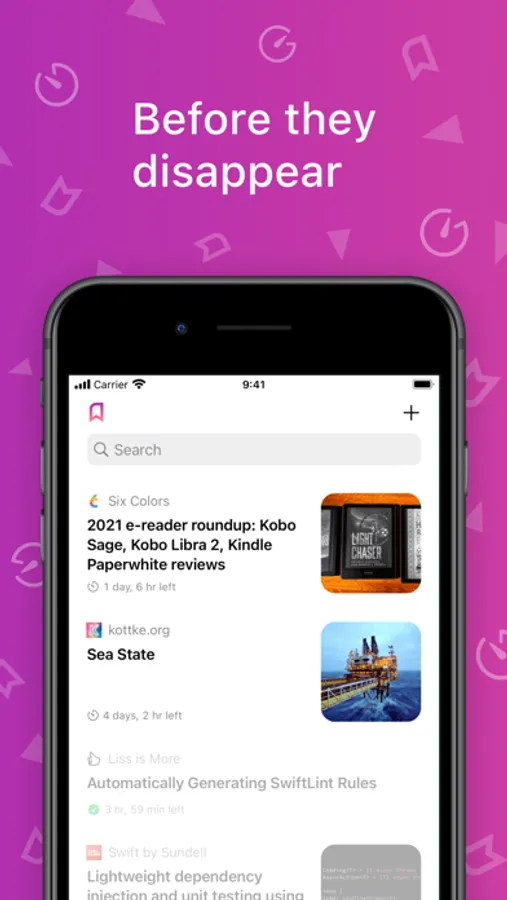 Unlike other apps that save bookmarks that stay unread forever, Ephemera sets you a deadline that the bookmark must be read by. Don't worry, you'll be reminded before the deadline expires — but miss it, and that bookmark is gone. It couldn't have been important anyway, right? Anything that you do read is kept around for future reference, too.