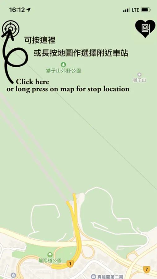- 亦能長按地圖以提供所按附近的小巴/巴士路線作資訊選擇