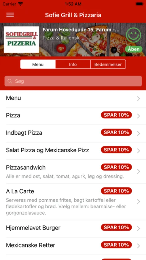 Med Sofie Grill and Pizzaria app på telefonen, har du madbestilling lige ved hånden.