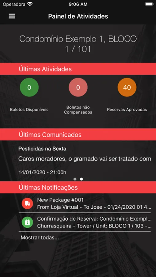 Visualizar cobranças em aberto da sua unidade e obter 2ª via de boletos (com recálculo automático de multas e juros);