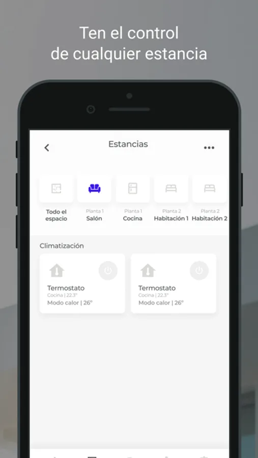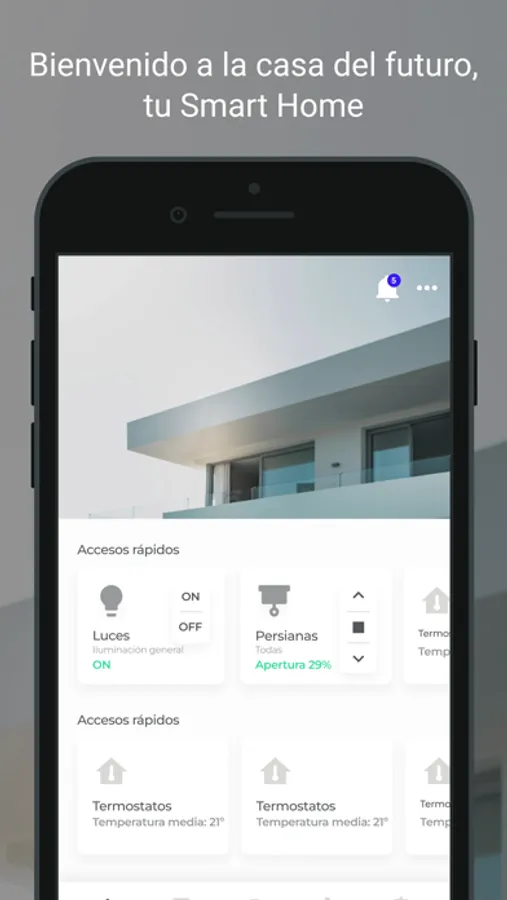 Controla la temperatura, la iluminación, los consumos de energía, las persianas... o abre y cierra tu puerta con solo un WhatsApp desde la App. En cualquier momento, estés donde estés y con notificación a tu móvil.
