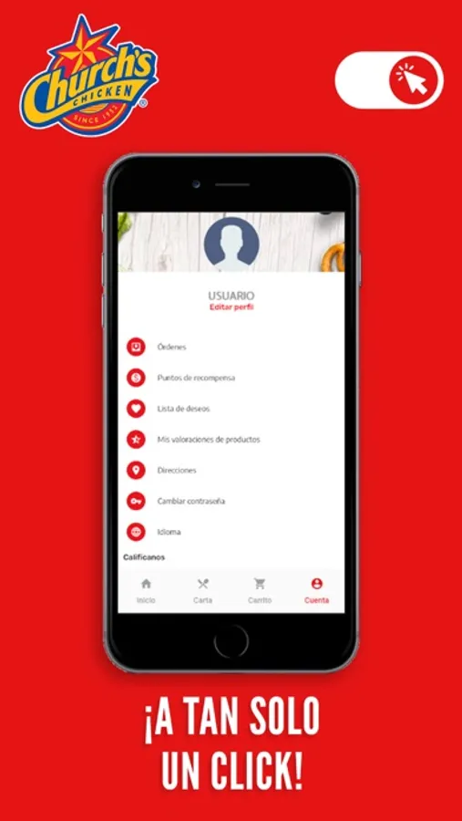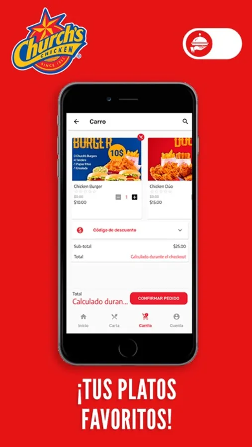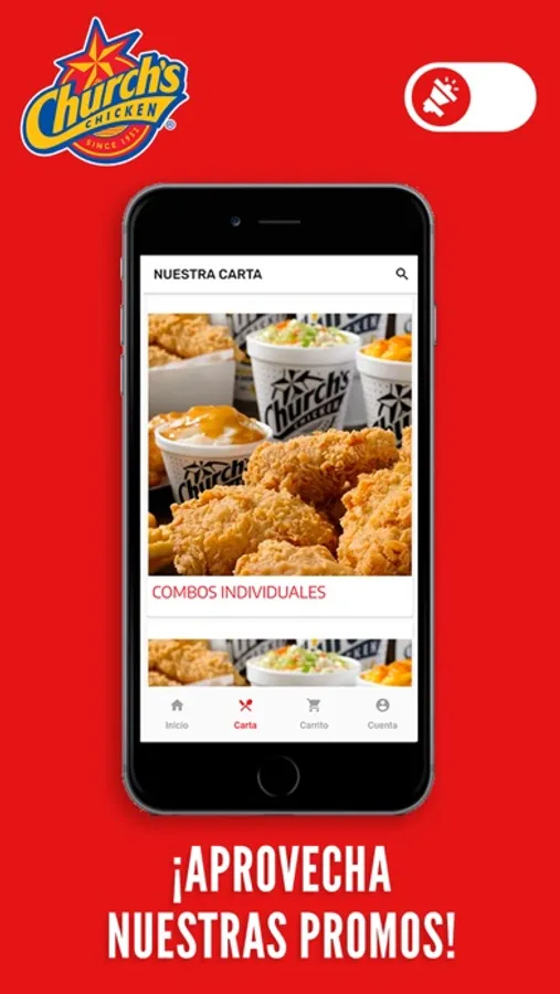 Con Church's Chicken podrás disfrutar de tus platos favoritos a tan solo un click de distancia y con la mejor tecnología.