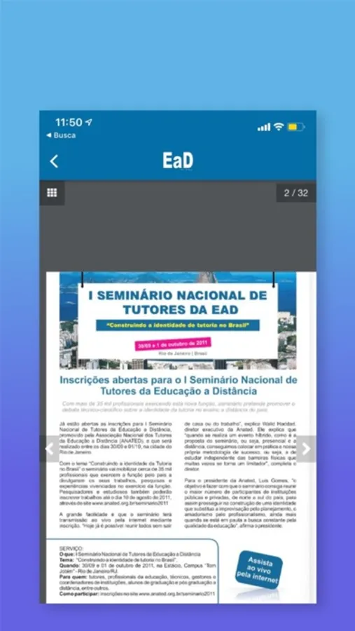 A EaD em Revista é uma publicação bimestral do Grupo Blue Comunicação em parceria com a ABE-EAD (Associação Brasileira dos Estudantes de Educação a Distância) de distribuição gratuita e circulação nacional.
