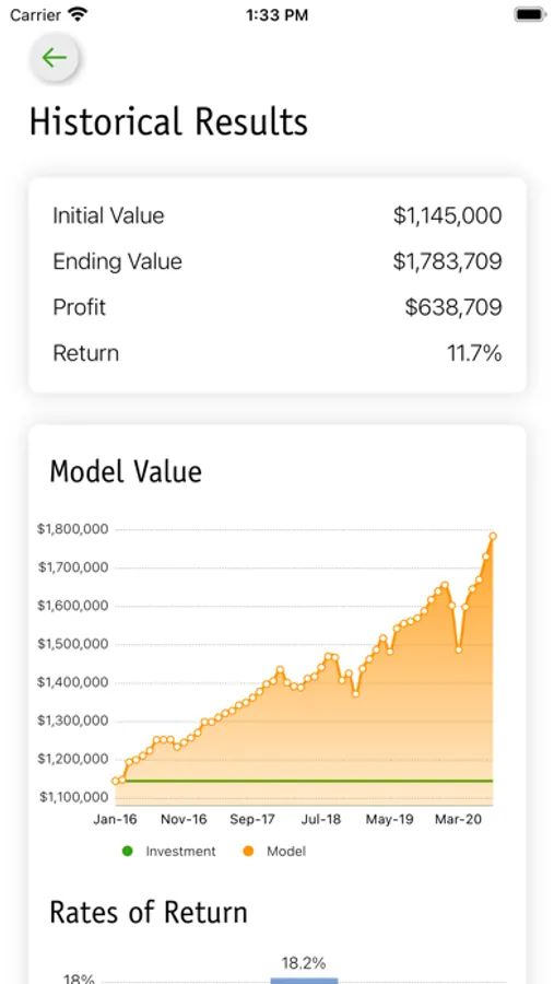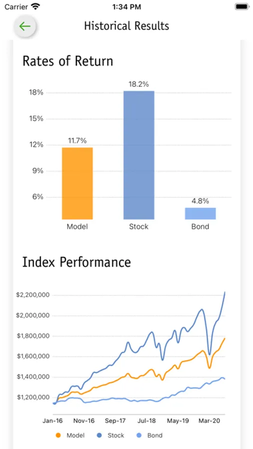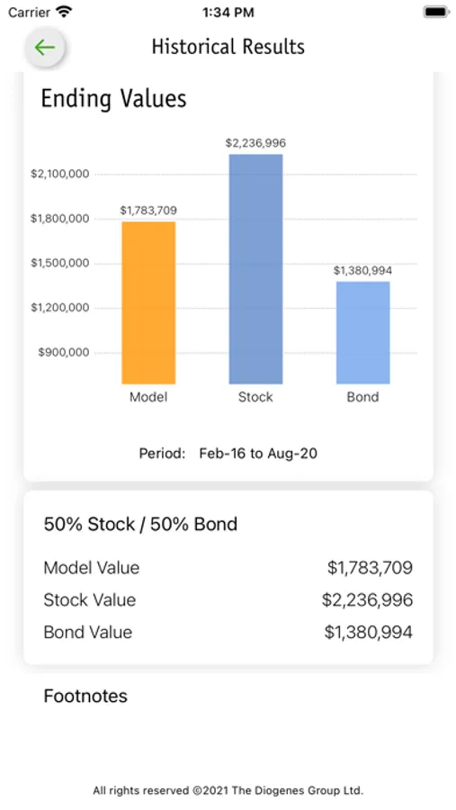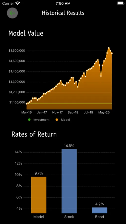 Example: "You invested $100,000 ten years ago and based on the Model performance you should be worth $250,000 today."