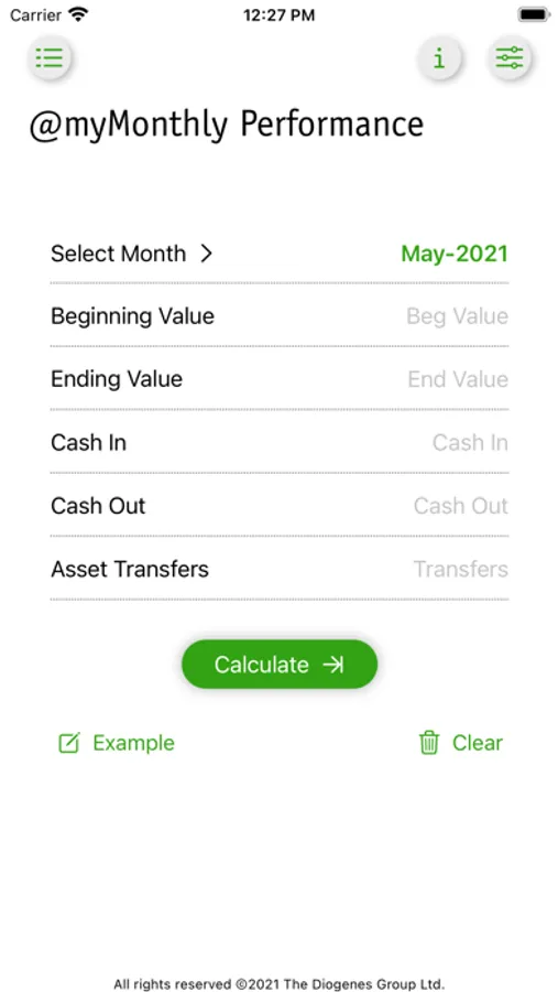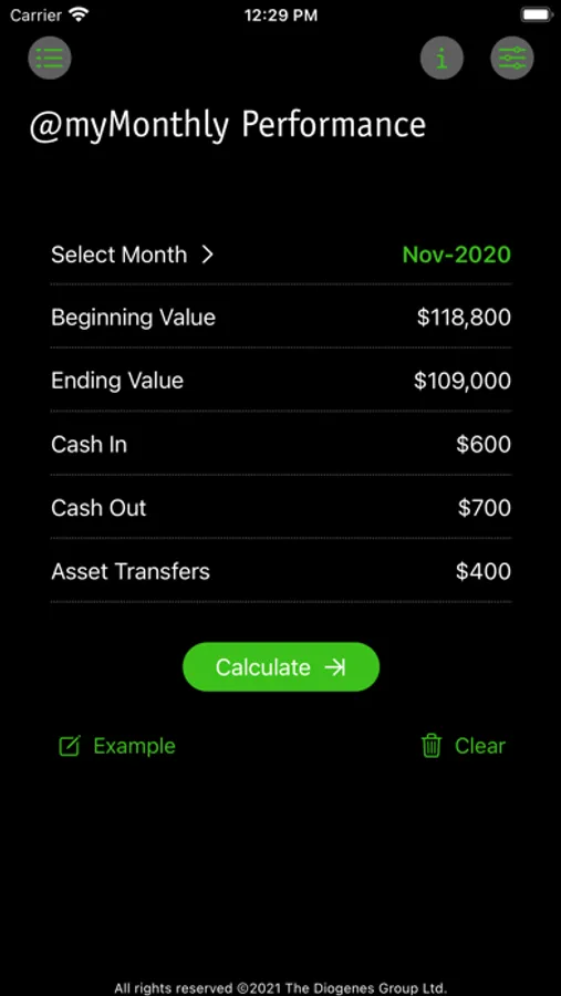 By simply entering in several values this app will calculate the Profitability and the Rates of Return on an investment account for a single month.
