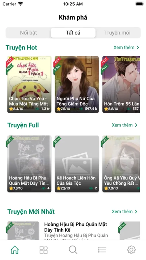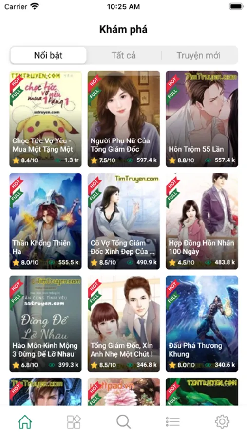 • Bảng xếp hạng Top Truyện hay, Truyện hot, Truyện đọc nhiều, Truyện mới