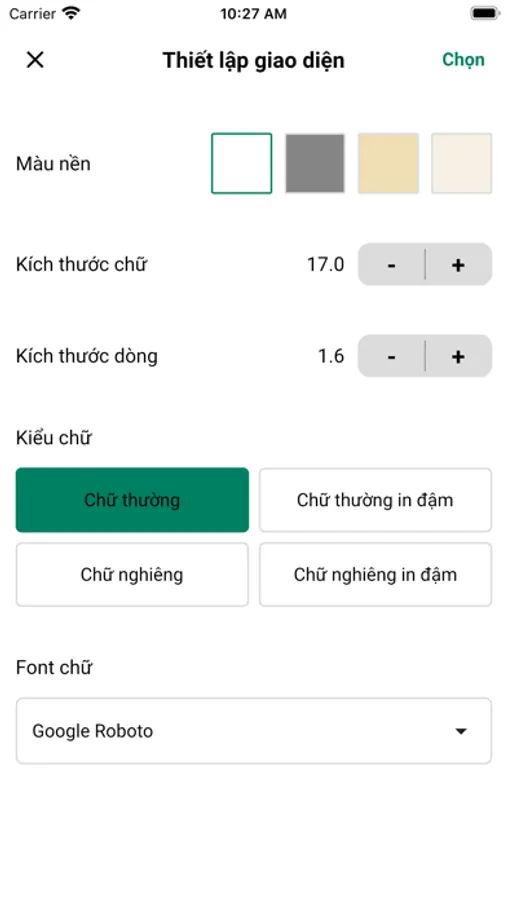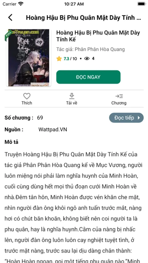 • Tuỳ chỉnh theme, cỡ chữ, kiểu chữ, màu nền, chế độ sáng, tối, đọc truyện không mỏi mắt.