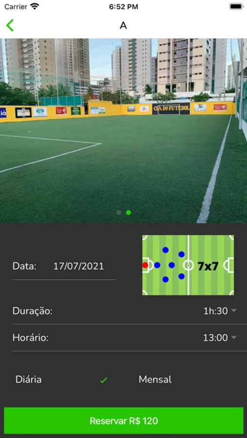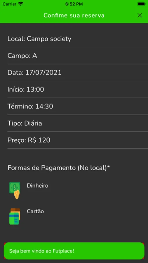 No FutPlace, você vai poder acompanhar todos os campos da sua região, horários e preços disponíveis. E com alguns toques... Pronto.