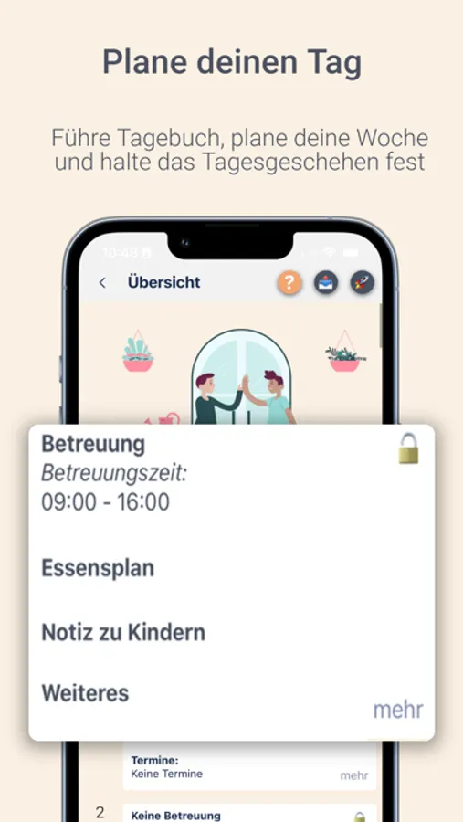 > Schutz deiner Daten hat für uns die höchste Priorität. Keine Daten zu deinen Kindern verlassen das Gerät und du allein hast Zugriff auf deine Betreuungsdaten.