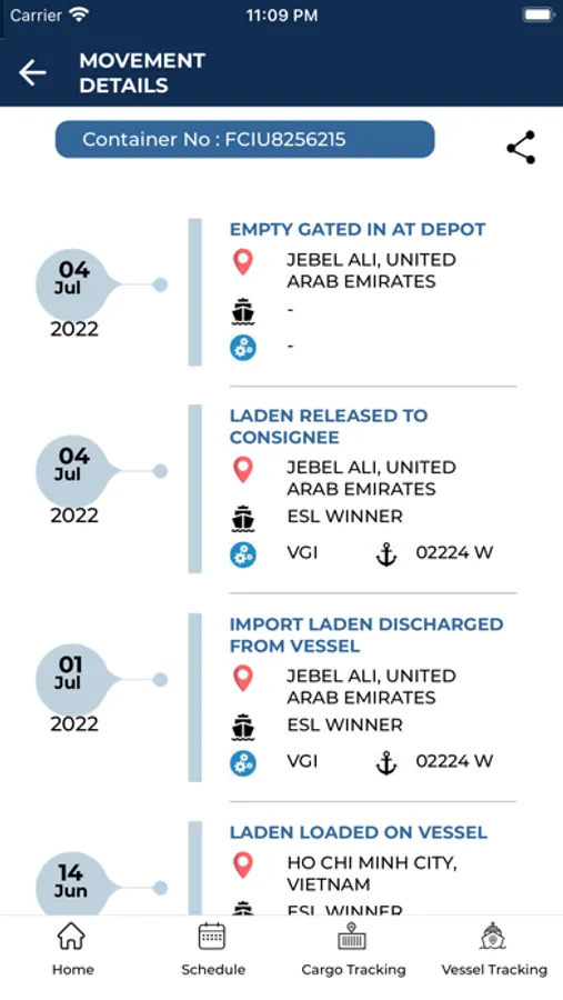 ESL (Emirates Shipping Line DMCEST) is a worldwide container shipping company serving with dynamic and extensive transportation networks in the rapid growing regions of Middle East, Far East Asia, South East Asia, Indian Sub-continent and Africa.ESL Mobile offers real time features for you to arrange your shipments at any places and any time. - Services including rotation, transit time, terminals, out ports and inland table - Schedules searched by port to port - Cargo Tracking with real time status searched by B/L or Booking or Container number - Vessel Tracking for real time arrival and departure schedule - Agency for local office contact details - About ESL of company background - E-commerce customer login