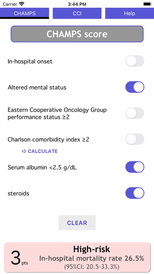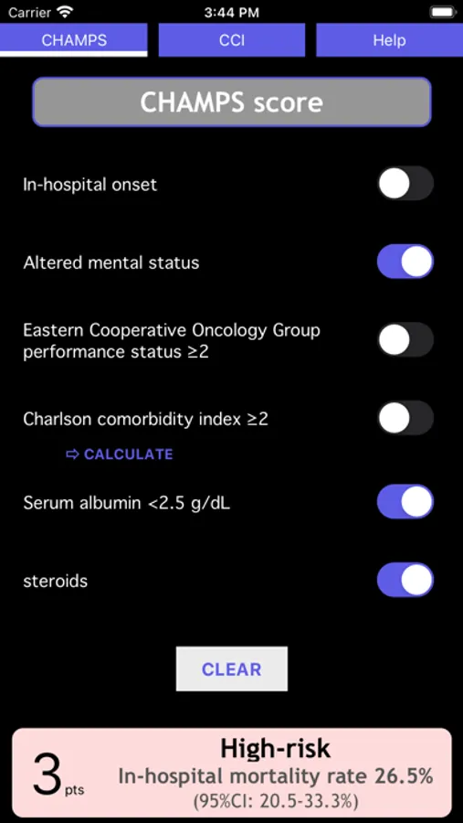 A mortality rate in acute upper gastrointestinal bleeding is 2%-10%. The "CHAMPS score" is a prediction score for in-hospital mortality in patients with nonvariceal UGIB. This score comprises six variables (in-hospital onset, serum albumin less than 2.5 g/dL, altered mental status, Eastern Cooperative Oncology Group performance status ≥2, steroids, and Charlson comorbidity index ≥2) with equal-weight scores. The patients were categorized into three risk categories: low (0 points: 0.2% risk), intermediate (1-2 points: 2.3%), and high (≥3 points: 26.5%).