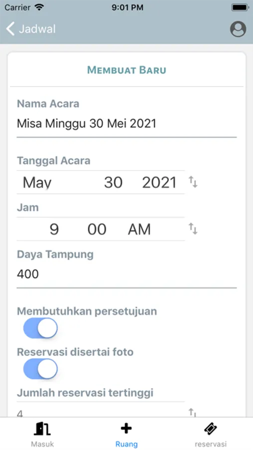 Reservasi Acara digunakan Apabila anda mengadakan suatu acara pertemuan dan ingin peserta acara untuk melakukan reservasi melalui aplikasi mobile phone sehingga anda bisa terbantu dalam memonitor jumlah orang yang ingin hadir, penentuan nomor kursi tempat duduk saat acara dan informasi pemetaan peserta bila dibutuhkan