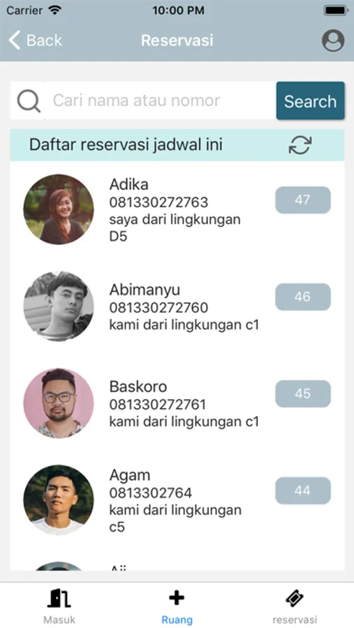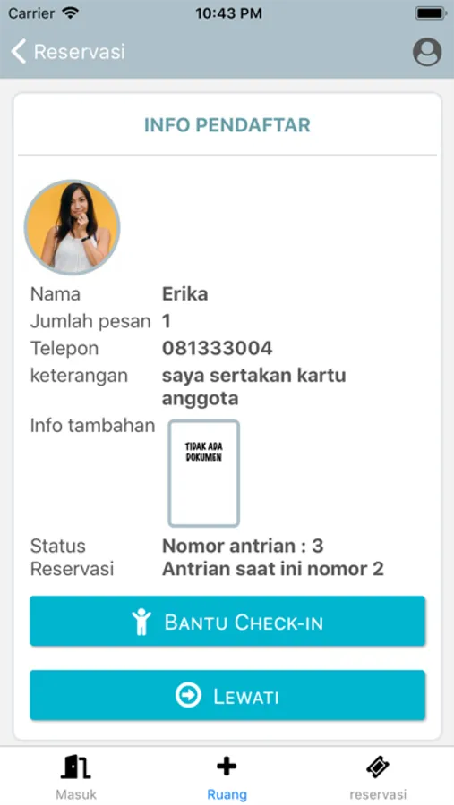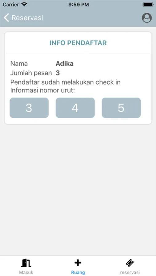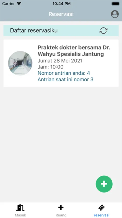 Reservasi Antrian, Fasilitas ini cocok digunakan untuk rumah sakit / dokter atau jasa pelayanan yang terdapat antrian, dengan menggunakan aplikasi masukruang pasien/pengguna jasa dapat memantau antrian secara realtime sehingga mereka dapat datang lebih tepat waktu sehingga tidak menimbulkan antrian yang menumpuk di rumah sakit / penyedia jasa