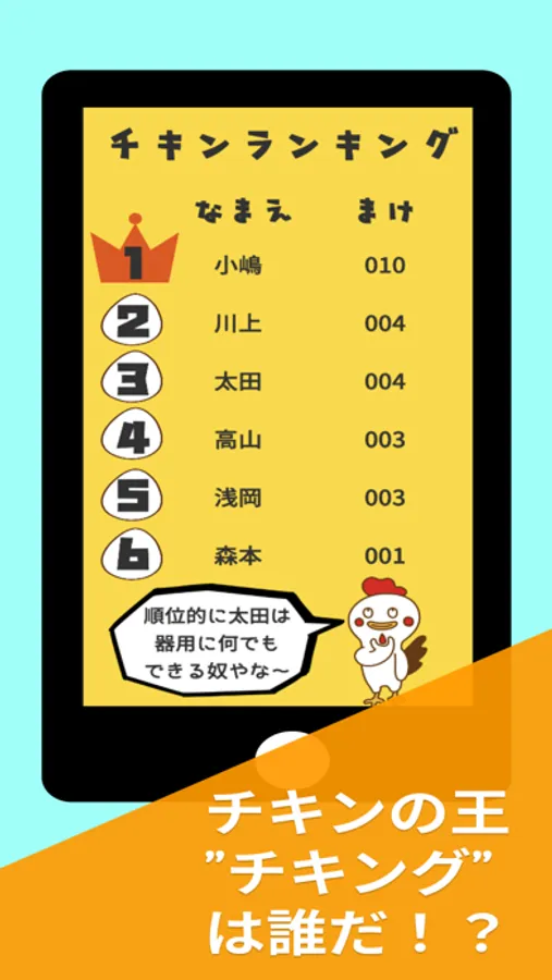 *負けた回数に応じて、友達のチキンランキングが・・!?*