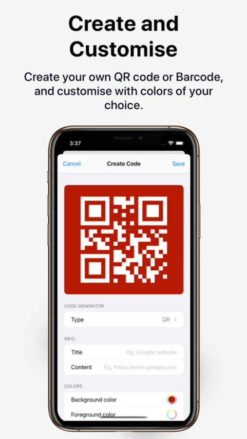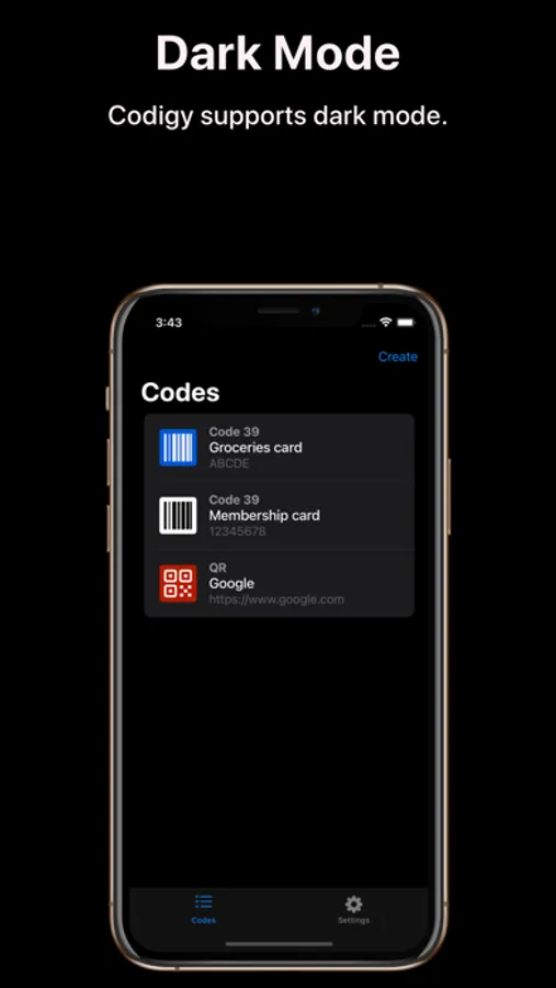 Note that all codes created are stored locally on your device and not backed up on any cloud provider.
