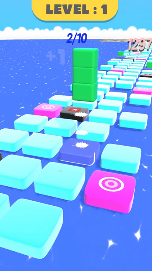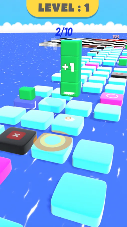 Hop and stack all the way to the finish line. Only bounce on good cubes and never on the black "x" cubes. If you hop anywhere near these "x" cubes, you will lose a cube and your score will lower.