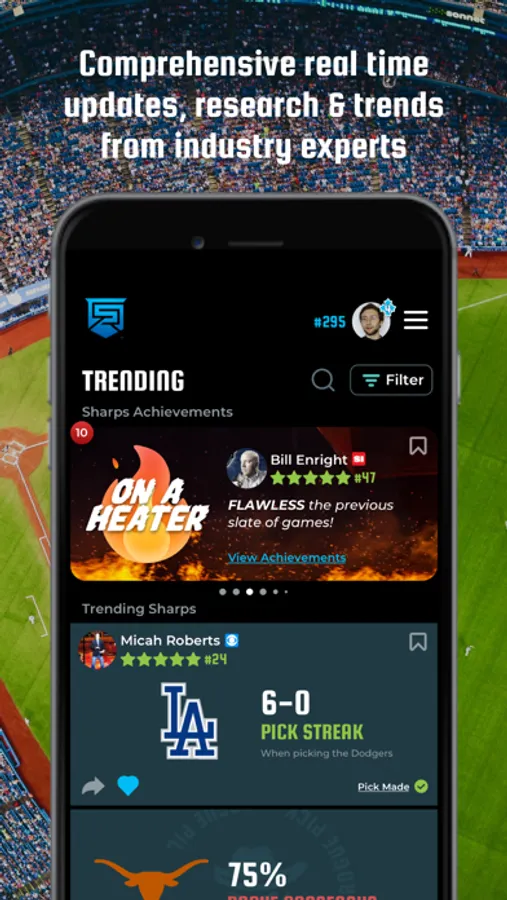 SharpRank presents our updated independent performance ratings app for sports personalities "Sharps", serious bettors, and you the fan! Follow your favorite media personalities to see their picks before the game and their performance ranking over time! We’ve also added a new League feature!