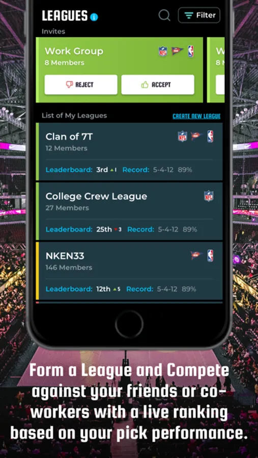 Compete in Leagues with both peers & the pros using our cross-sport proprietary ranking algorithm. We have also added Props so our app not only lets you pick the game but also its Prop picks!