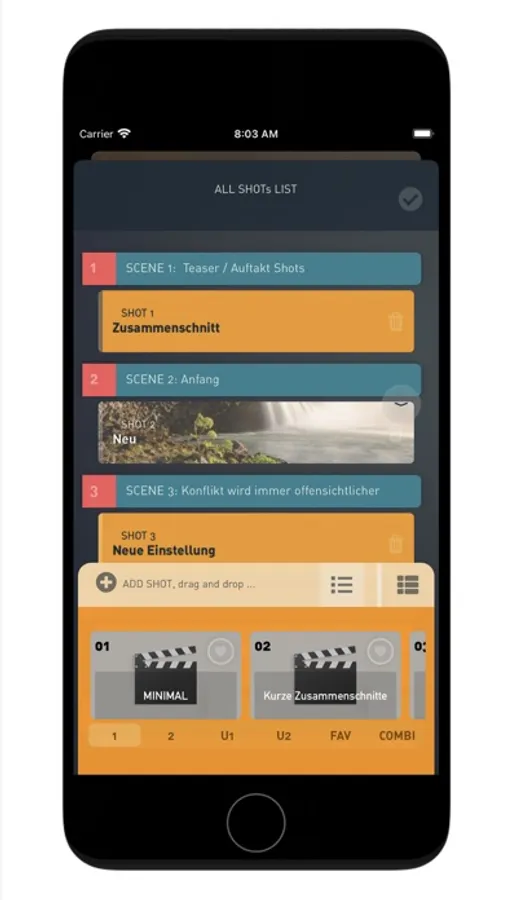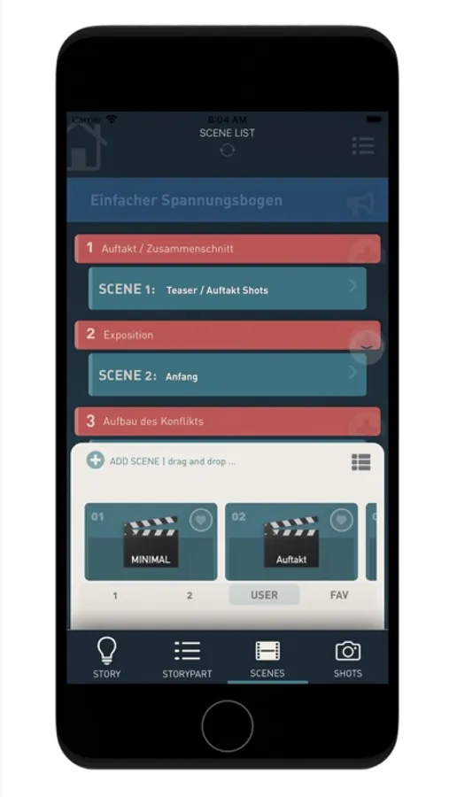 › simply add story parts, scenes and shots via DRAG & DROP and expand your story - from a factory preset list or from self-created presets and specifications,