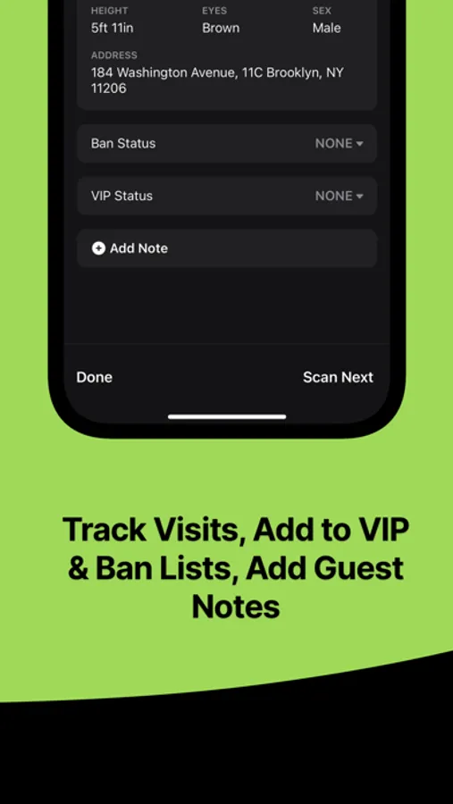 The Vyyer ID Scan app makes it easy to manage guests. Track guest visits, add guests to VIP and Ban Lists, and even add notes about their preferences.