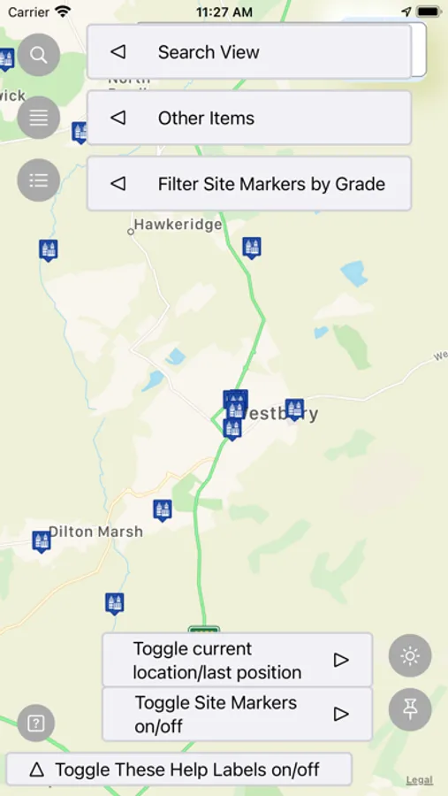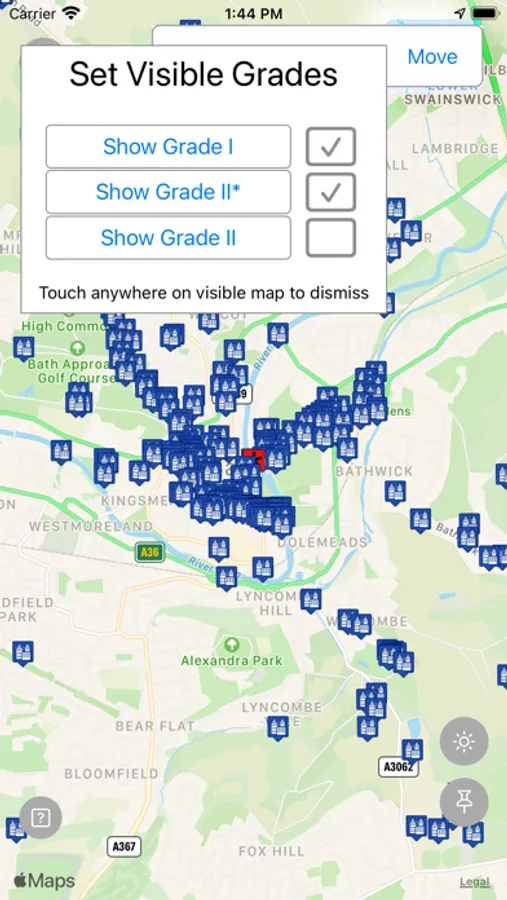 You can filter sites, so the map shows only Grade I sites, only Grade II* sites, only Grade II sites or any combination of the three.