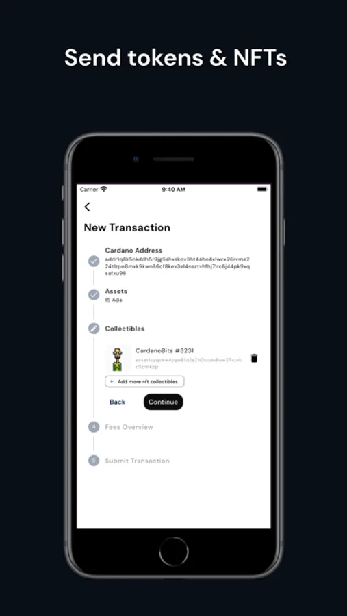 VESPR focuses on providing lightning-fast speed and unmatched reliability, allowing you to make transactions anytime, anywhere. Send, store, and receive Cardano native tokens, showcase your NFT collection, connect to dApps, and carry the world of Cardano with you wherever you go.