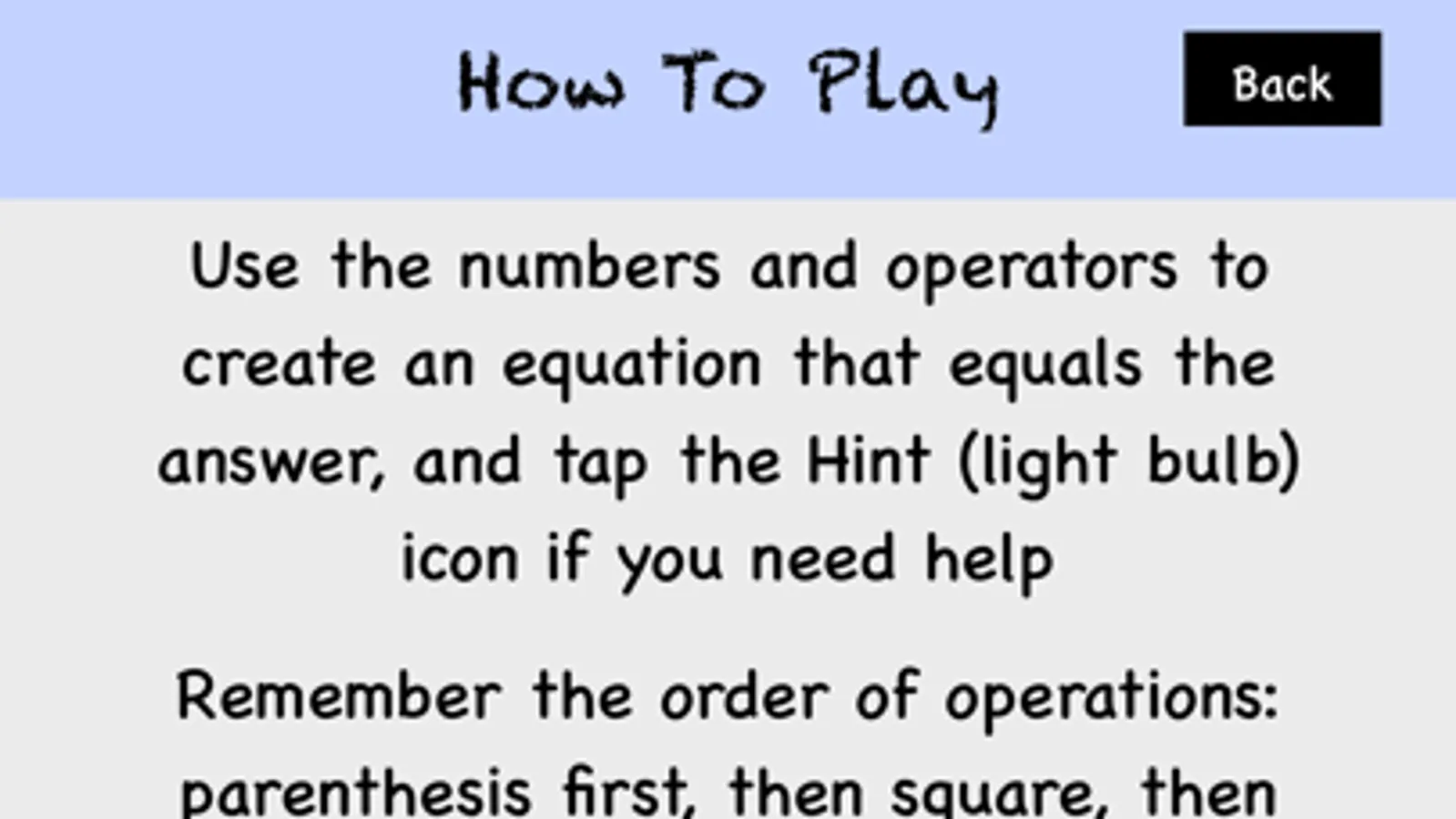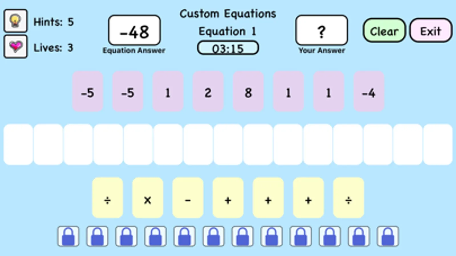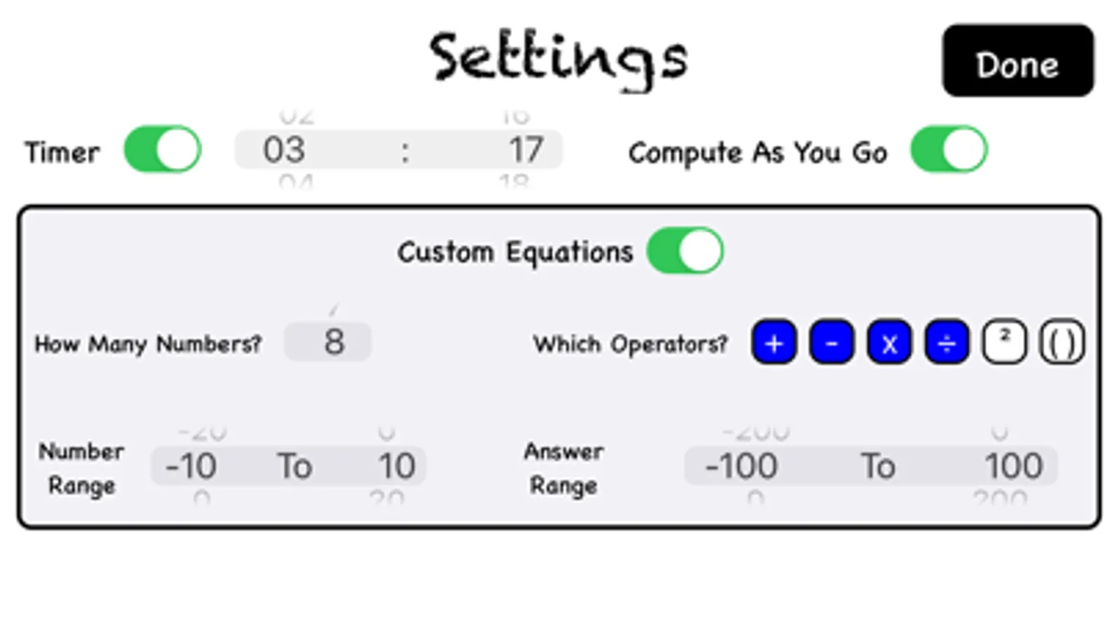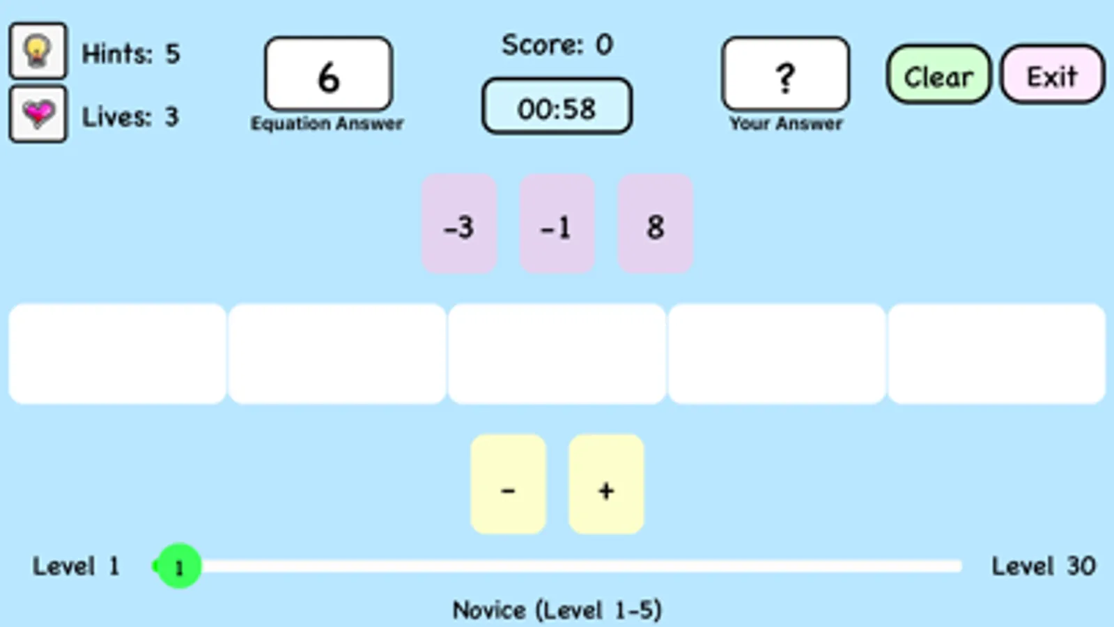 Equations are randomly generated. No two games are ever the same!