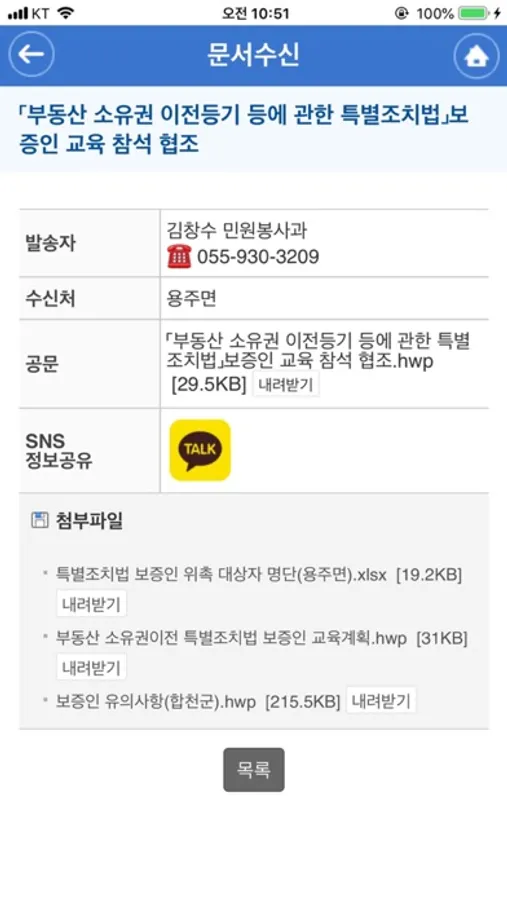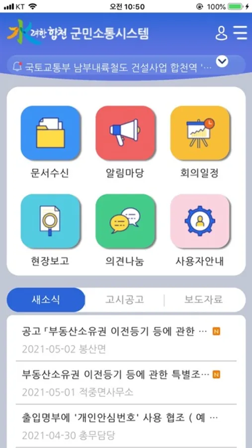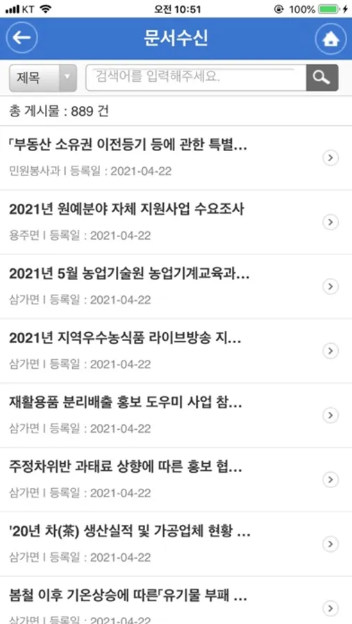 - 각 읍면동 또는 리별로 알림 및 첨부파일들을 확인할 수 있습니다.