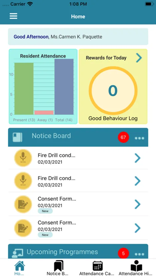 Application for staff to capture and view their own attendance, and receive announcements. Also, this application is used to capture the home resident's attendance, symptoms check, medical information and rewards.