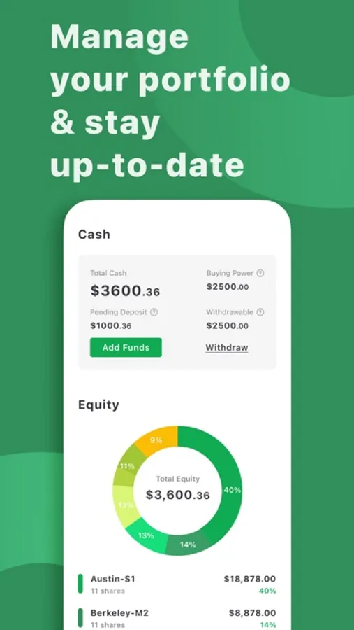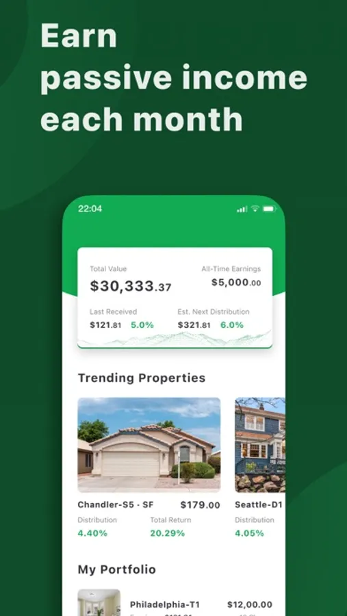 View full disclosure of property legal and financial information, place orders, manage your portfolio, track monthly cash distributions and long-term appreciation all in one place with a few taps.