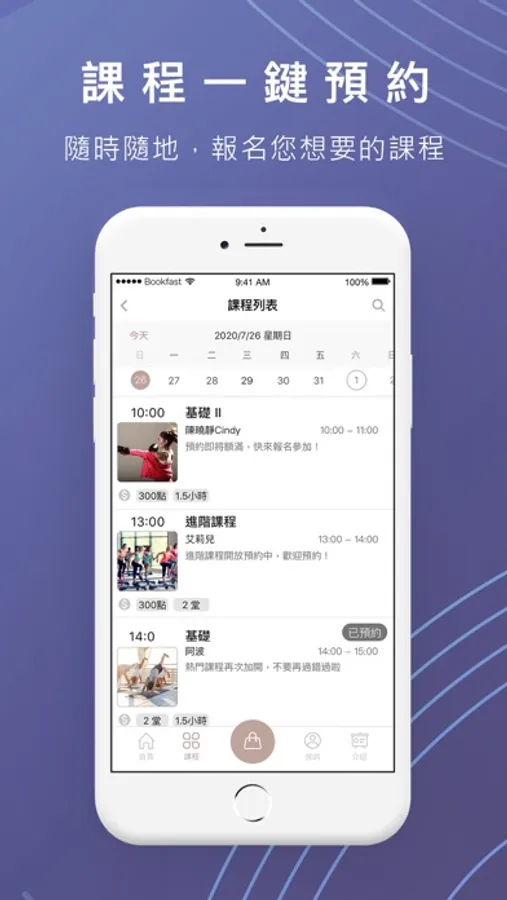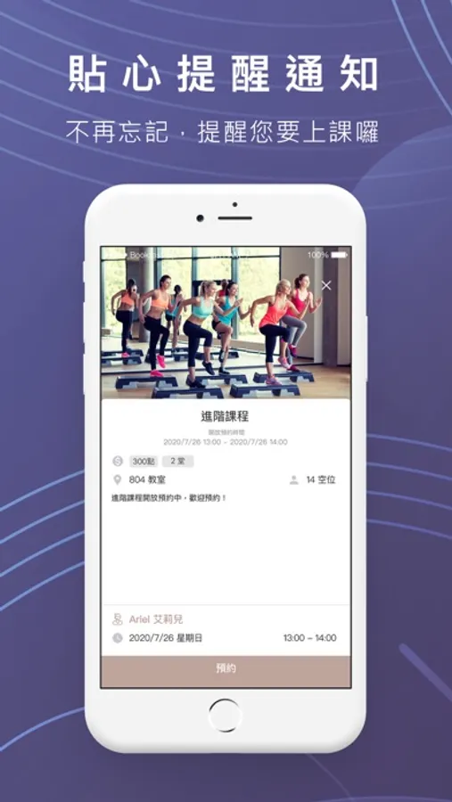 登入會員之後,你將能隨時隨地掌握教室的課表、預約 / 取消 / 課程、設定行事曆提醒,檢視已預約課程!