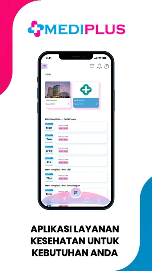 MEDIPLUS : Merupakan program aplikasi yang dapat di integrasikan dalam suatu pelayanan kesehatan terpadu yang memiliki fitur untuk pasien, dokter, dan apotek, yaitu pencarian praktek dokter dan apotek terdekat, manajemen jadwal praktek dokter, layanan antrian online, chat konsultasi dengan dokter dan apotek, layanan pembelian dan pengiriman obat online, layanan broadcast dan informasi kesehatan, pengiriman rekam medis data scan, manajemen surat medis dan resep digital, serta manajemen transaksi pembayaran.