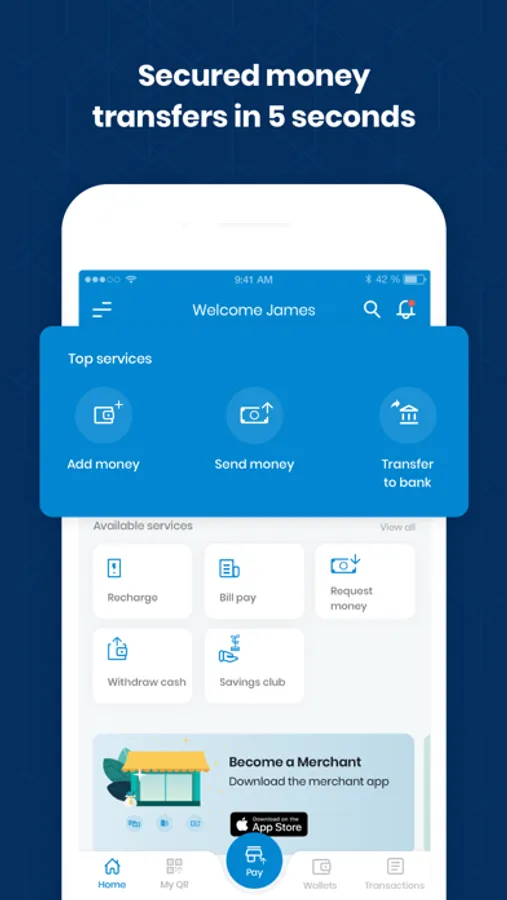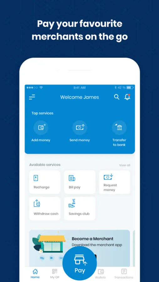- Pay on the go using your wallet balance, debit card, credit card, and bank account by just scanning the QR at the merchants.