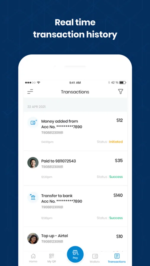 - Track all your transaction in one place hustle-free. A detailed view of all the transactions done using any payment instrument helps you reconcile easily. You can also apply filters to check for any specific transaction within the date range, by service type, and by instrument type as well.