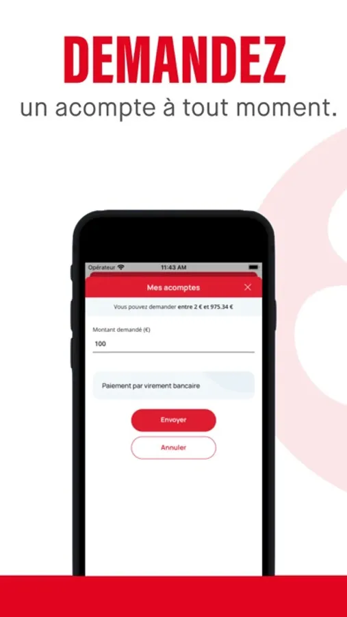 Effectuez vos demandes d'acomptes directement dans l’application et recevez une réponse rapidement