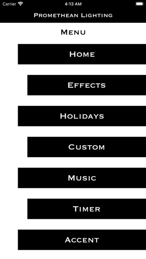 This app is used to control your Promethean Lighting System. This unlocks the full potential of your light show system with access to over 4.5 quadrillion combinations, including various effects, holidays patterns, accent lighting, music shows, and much more!