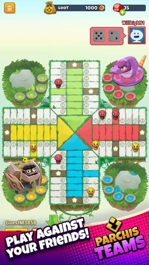 Download and register for free in the Parchis TEAMS community and create your profile. Once you log in, Kubi will show you how the game works and what to do: choose your favourite game mode, choose your favourite island, choose your bet, etc.