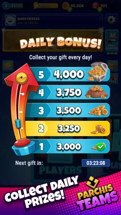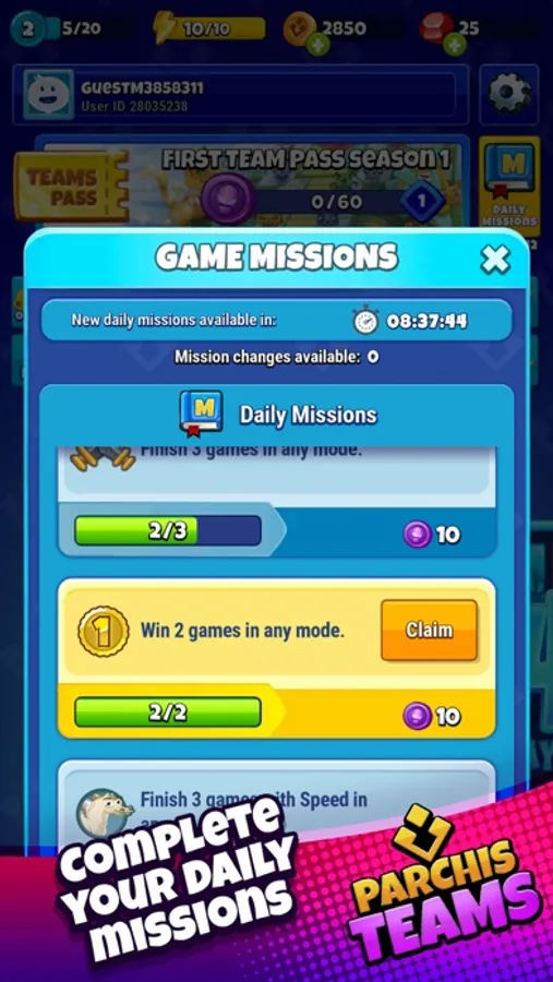 Collect daily Parcheesi rewards to bet higher in the app and don't forget to complete the daily missions. These will help you progress through the Battle Pass, where you can earn many daily rewards.