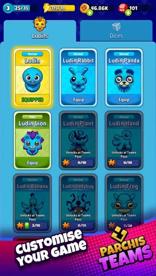 You can customise your game using your favourite tiles and dice. Go to the inventory section and get your favourite Ludins.
