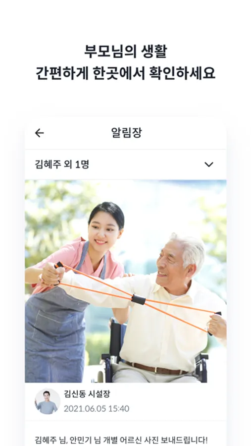 보호자 관리가 어려워서 수급자 한 분 당 보호자 한 분에게만 연락하셨나요? 오늘케어는 수급자를 고르면 연결된 모든 보호자에게 알림장이 보내져요.