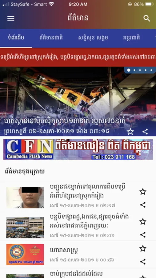 Cambodia Flash News TV (CFN) is a news organization established in early 2021 according to the license issued by the Ministry of Information No. 089 dated March 05, 2021. Cambodia Flash News TV (CFN) is a subsidiary of U.S.R.V Group Co., Ltd registered with the Ministry of Commerce on January 28, 2021, is recognized as a legal company office in the Kingdom of Cambodia. Cambodia Flash News (CFN) is an independent institution, we carry out our professional duties and responsibilities as a leading online TV company in Khmer and Chinese. We have outstanding partners who have many years of experience in the field of journalism and entertainment video production, who have been striving to serve the audience, which brings the latest and most reliable information. In particular, we have well-known producers who specialize in the production of entertainment videos that reflect the culture, economy, society, sports, reports and interviews on various issues and high-quality online advertising to meet the needs of customers.