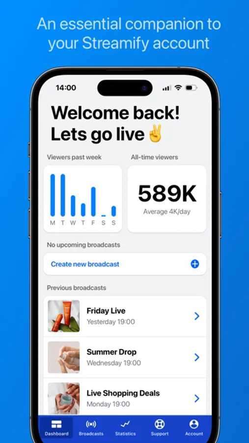 Streamify Broadcaster is your gateway to professional, high-quality mobile streaming. An essential companion to your Streamify account, it leverages the camera capabilities of your iPhone, transforming it into an input device for seamless live streaming.