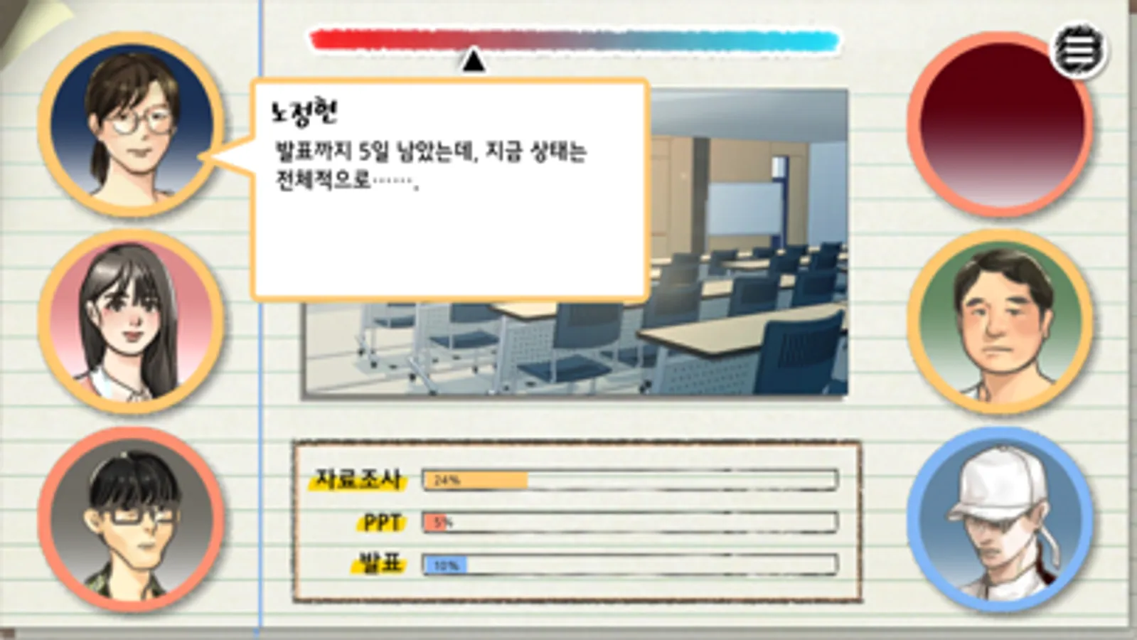 조원들을 모아 회의를 하자! 내가 맡지 않은 역할의 상태를 알 수 있는 절호의 기회!
