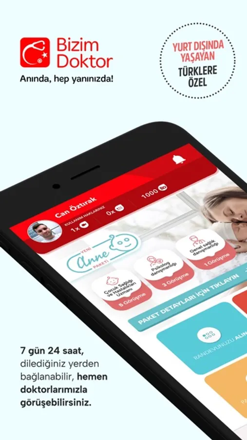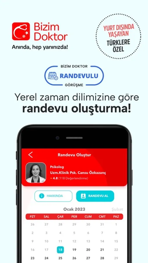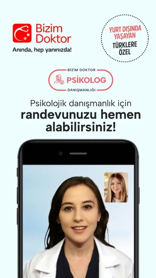 Bizim Doktor uygulamasını ücretsiz olarak indirin ve ilk görüşmenizi ücretsiz olarak gerçekleştirin!