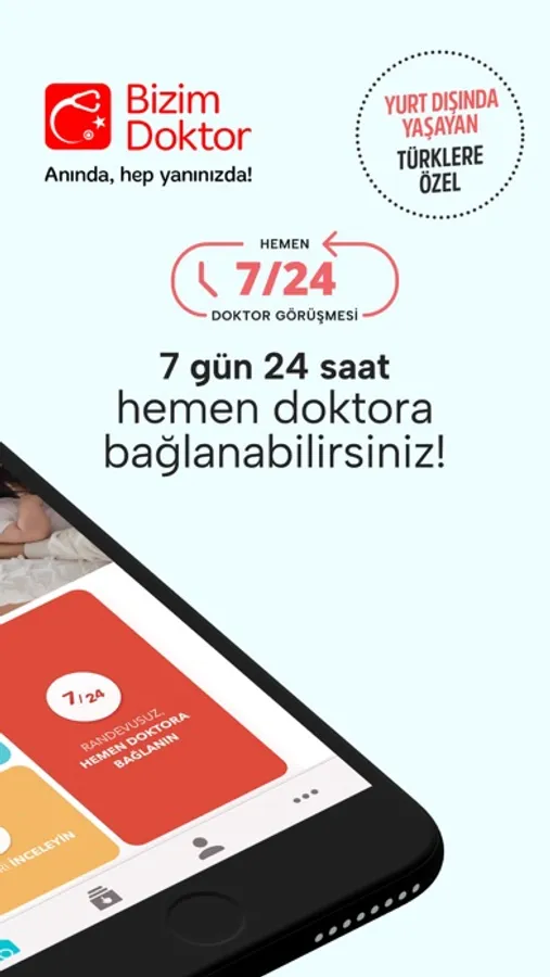 Doktorunuzu telefonunuza getiren Bizim Doktor’un online danışmanlık süresinde doktorlarla isteğinize bağlı olarak 7 gün 24 saat görüntülü ve Türkçe olarak iletişim kurabilirsiniz.