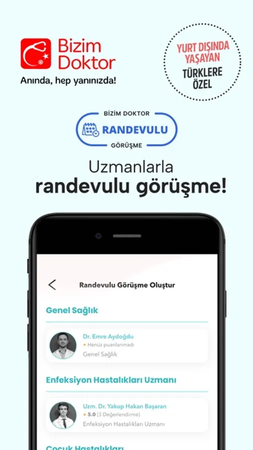 Yurtdışında yaşayan Türklere özel ilk ve tek uygulama olan Bizim Doktor’un öne çıkan hizmetleri şu şekilde sıralanabilir;