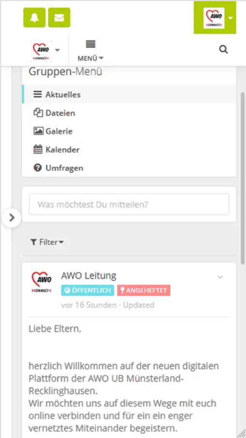 AWO Connect ist das sichere soziale Netzwerk der AWO im Unterbezirk Münsterland-Recklinghausen.