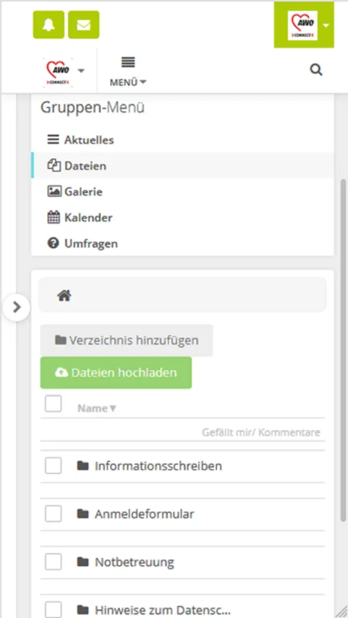 Den Nutzer*innen wird die direkte Kontaktaufnahme mit den einzelnen Einrichtungen ermöglicht. Der Informationsaustausch erfolgt in geschützten Bereichen in Form von Gruppen- und in Einzelkontakten. Die Einrichtungen informieren die Nutzer*innen über alle Neuigkeiten und Änderungen direkt und bequem. So halten Sie digitalen Kontakt zu Ihren Kindern und Angehörigen in den Einrichtungen der AWO, bekommen Beiträge aus dem Alltag der Einrichtung und können auf Beratungsangebote und Tipps der Mitarbeiter*innen vor Ort zurückgreifen.